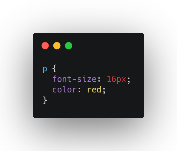 O p é o seletor (para parágrafo), já font-size e color são as propriedades que recebem os respectivos valores.