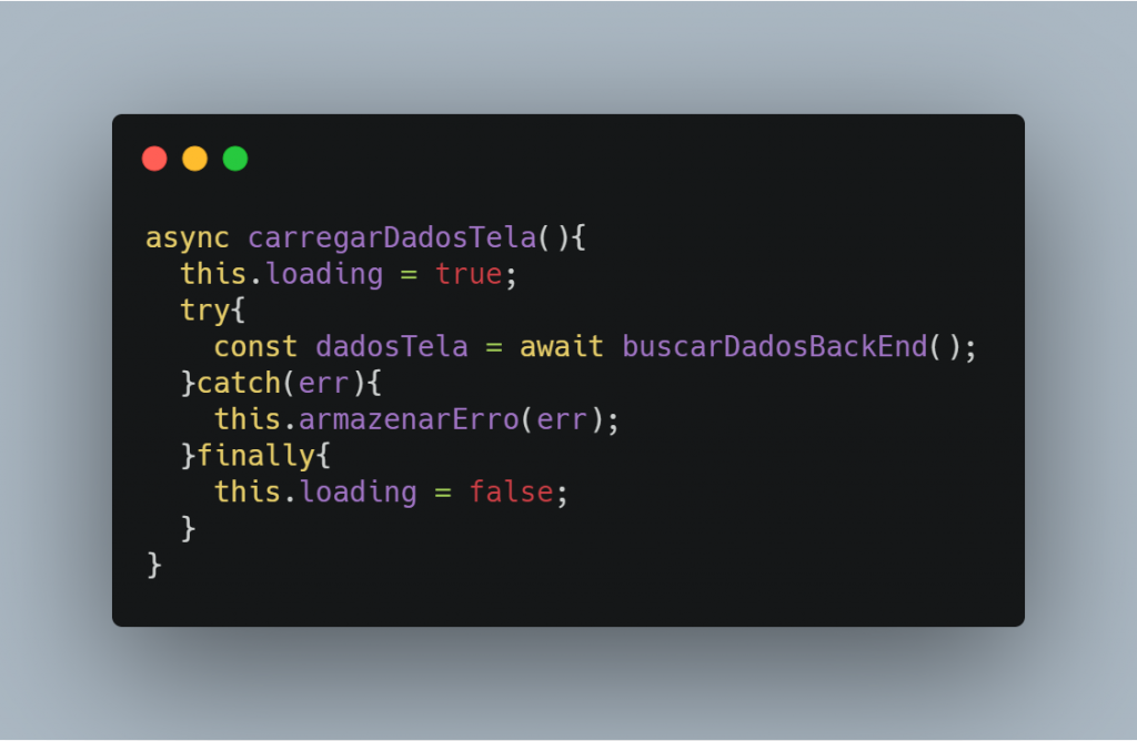 Com o bloco finally é possível garantir o loading será encerrado, pois o código que encerra loading será executado tanto se a requisição der sucesso ou erro.